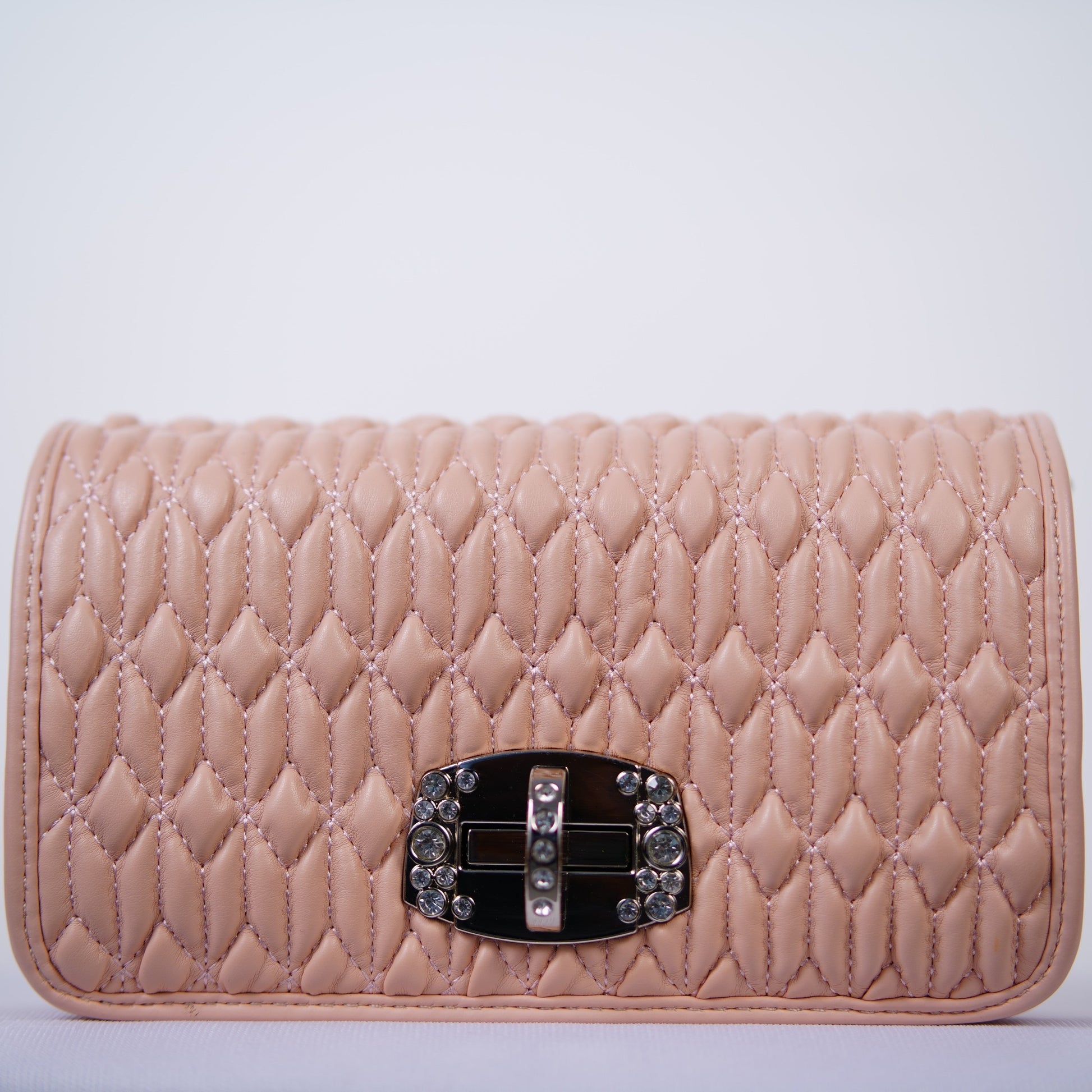 She stepped into the evening glow with quiet confidence, her Bella Rosé Luxe Clutch catching every eye in the room. With its soft blush tone and artful diamond-quilted stitching, this statement piece whispered elegance and charm.