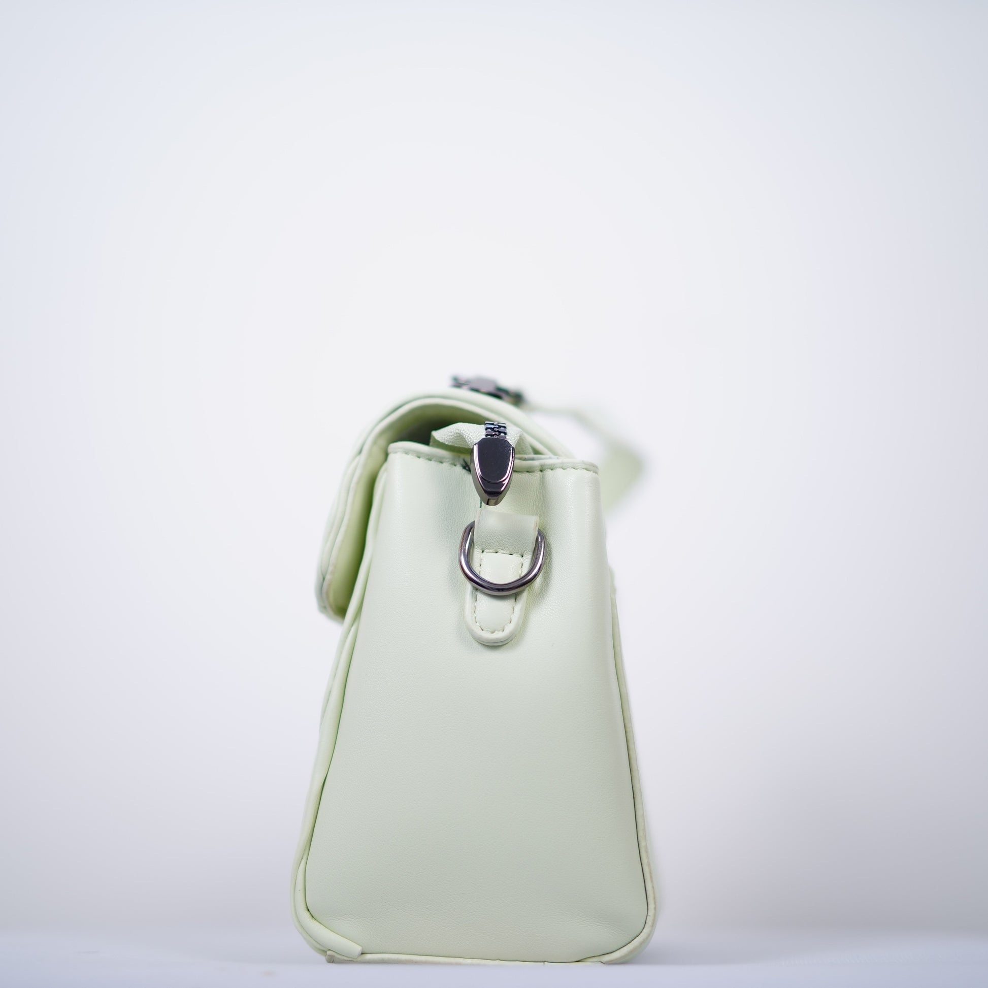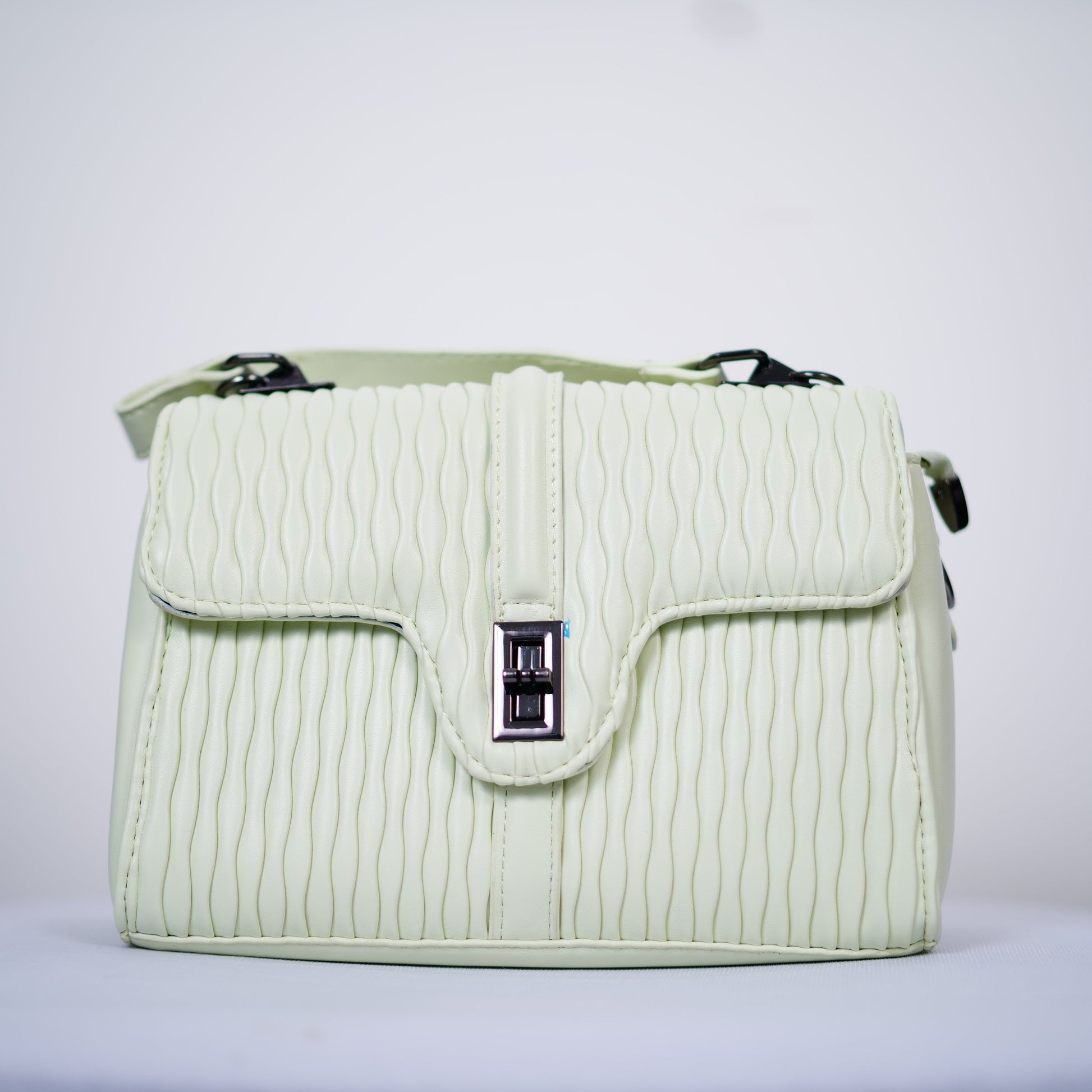 This is not just any handbag. It is the Mint Woven Elegance—where meticulous craftsmanship meets modern poise. The soft pastel green exudes calm confidence, while the rhythmic wave-like pattern across its surface evokes the serenity of nature’s gentle flow. Every stitch on the textured flap is intentional, every line a silent tribute to detail.