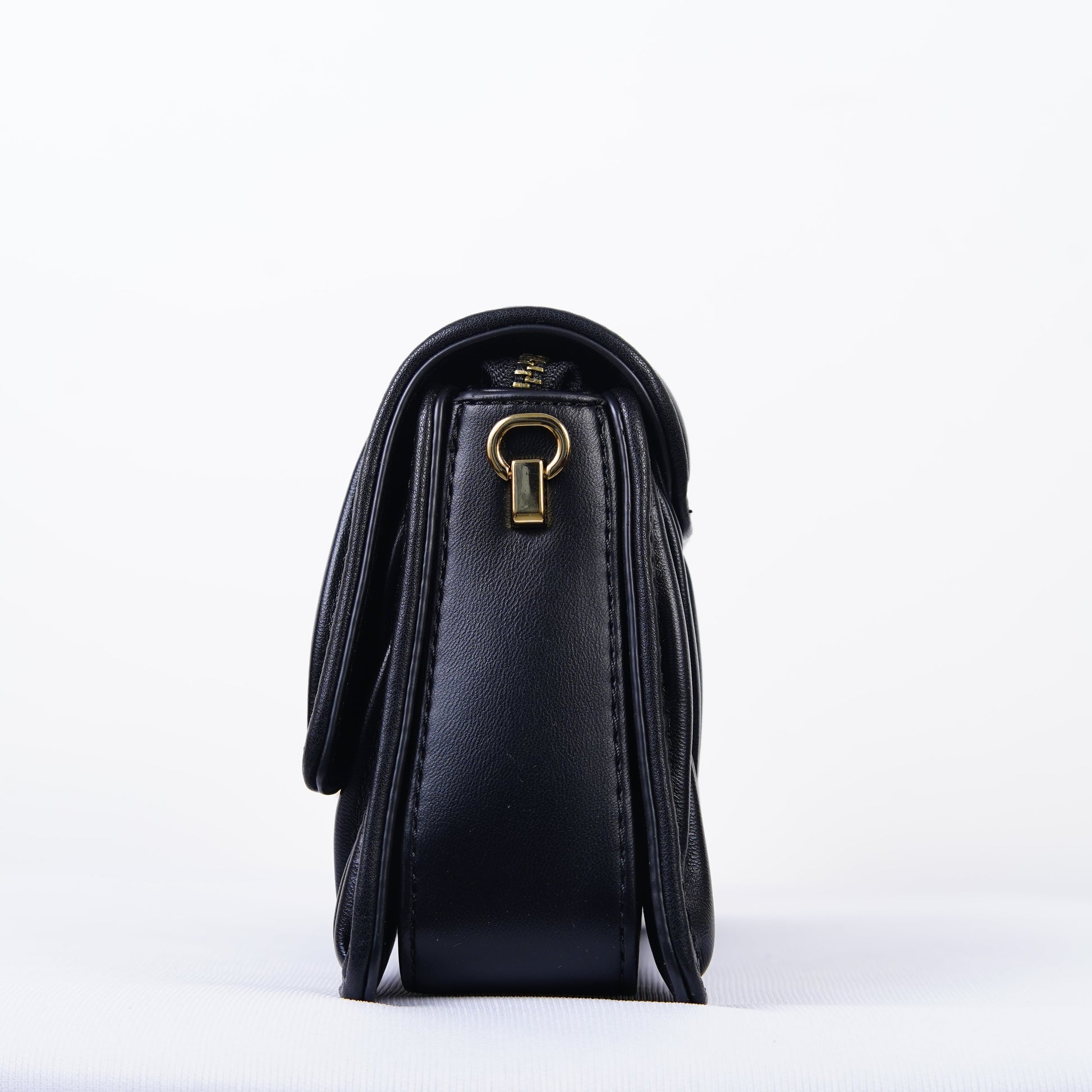 A single golden stud clasp holds secrets and stories within — polished, minimal, yet undeniably bold. Whether she's slipping into a gallery opening or stepping into a candlelit dinner, this clutch is her silent power, her final touch of mystery.